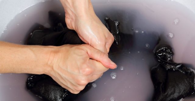 - Se agrega una pequeña cantidad de jabón líquido o un gel de lavado suave al agua; una tapa de botella será suficiente.