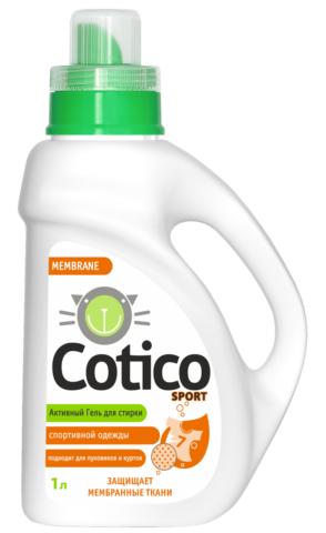"Cotico". Este gel ayuda a lavar y refrescar fácilmente los productos de membrana, pero al mismo tiempo cuida cuidadosamente la estructura del material. Apto para uso en lavadora y a mano. Después de la limpieza, los poros del tejido permanecen abiertos, por lo que la funcionalidad del producto se conserva por completo. Cualquier prenda de membrana se puede lavar con ella.