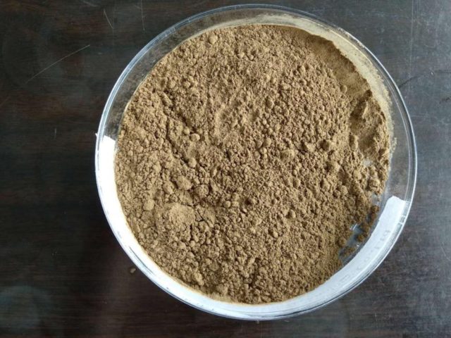 - la raíz seca de la planta se tritura en el volumen de una cuchara pequeña;