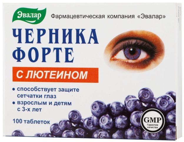 Las vitaminas para la salud ocular con luteína y arándanos muestran un alto nivel de eficacia. La droga es un suplemento dietético. La antocianina contenida en los arándanos promueve la síntesis y renovación del pigmento visual rodopsina.