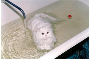 El gato debe bañarse solo en caso de una fuerte contaminación, que no puede hacer frente por sí solo.