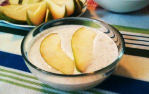 - Ponga en un bol o bol. Decora con rodajas de pera y nueces.