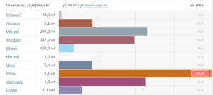 En la composición del trigo sarraceno verde, por 100 g (en relación con la tasa diaria):