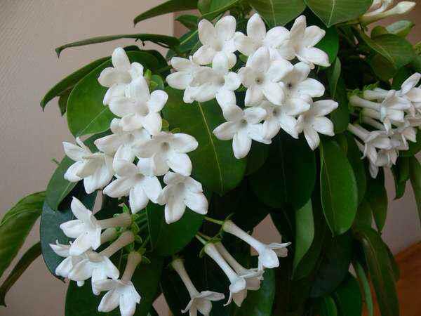 El jazmín es un árbol de hoja perenne con flores fragantes. A menudo se confunde con chubushnik. Chubushnik tiene flores más grandes y numerosos estambres de color amarillo brillante. El jazmín tiene solo 2 estambres, están ocultos en una corola larga y son casi invisibles. La principal diferencia es que el jazmín es una planta tropical y no puede crecer en campo abierto en latitudes medias, en contraste con el "jazmín" (simulacro de naranja) de jardín resistente a las heladas. El jazmín viene en blanco, amarillo y rosa. Altura de la planta: de 1 a 3 metros. Los frutos no son comestibles. Algunas especies florecen durante todo el año. En climas templados, la planta se cultiva en edificios residenciales, invernaderos, invernaderos.