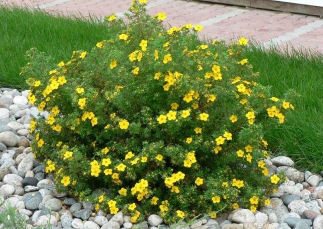 De junio a septiembre, el arbusto cinquefoil tiene brotes únicos de color amarillo brillante con numerosos estambres en el núcleo. A partir de mediados de verano, está abundantemente cubierto de frutos - hemicarpas pardas- "botones" con fina pubescencia. La planta arbustiva es resistente a las heladas y sin pretensiones, ama los suelos fértiles y húmedos y los lugares iluminados.