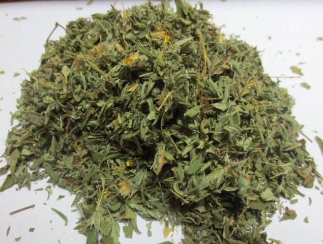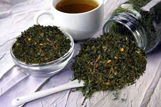 - Los tallos y hojas secos en un volumen de 15 g se vierten con agua hirviendo.