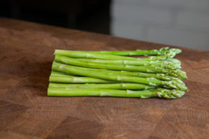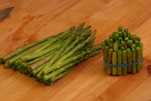- picar algunos brotes de espárragos verdes frescos, después de cortar las partes inferiores;