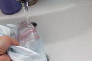 - Placez la zone souillée du chiffon sous l'eau courante froide. Il convient de garder à l'esprit que plus la pression de l'eau est élevée, plus il sera facile de laver les vêtements et moins cela prendra de temps;