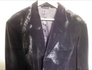 Le matériau doit être soigneusement repassé avec un fer à repasser. La température élevée entraînera l'absorption du moule dans la poudre de craie. Après le traitement, il restera à secouer ses restes et à laver les vêtements. L'avantage de cette méthode est que la craie n'a pas d'odeur, donc après avoir éliminé les dommages, il n'y aura pas d'odeur désagréable.