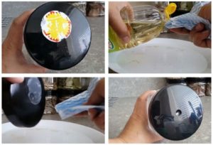 - Vous pouvez adoucir l'autocollant avec de l'huile végétale. Ils doivent également frotter l'étiquette, attendre qu'elle soit complètement imbibée. Grattez le papier support et essuyez le reste avec de l'eau savonneuse.