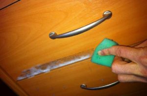 Une pâte de soude et d'eau fonctionne également bien avec de la colle. Ce mélange est utilisé pour lubrifier la zone contaminée du meuble, laissez-le là pendant 10 à 15 minutes, puis essuyez les restes de colle avec un chiffon et rincez à l'eau tiède.