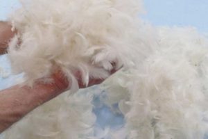 Les plumes sèches et propres sont remises dans l'oreiller et la housse est à nouveau cousue.