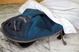 - Tremper... S'il est permis d'immerger le sac à dos dans l'eau, mais qu'il ne peut pas être frotté ou nettoyé avec une brosse, le trempage habituel dans de l'eau savonneuse dans de l'eau froide pendant 15 à 20 minutes aidera. Après cela, le sac à dos est simplement rincé et envoyé pour sécher, et il est conseillé d'utiliser un séchoir de type horizontal - sur celui-ci, le matériau du produit ne s'étirera pas sous son propre poids.