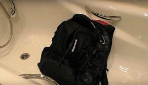 - Le sac à dos lavé est soigneusement rincé à l'eau claire, la procédure doit être répétée plusieurs fois jusqu'à ce que l'eau soit complètement propre.