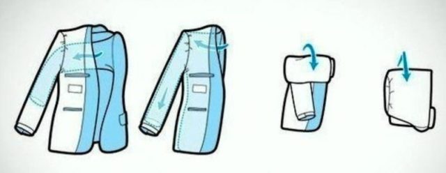 Pour éviter le froissement, il est recommandé de plier vos vêtements à chaque fois après utilisation.Vous ne pouvez pas le jeter sur un canapé, sur une chaise ou dans un placard avec une masse solide, en décidant de le retirer plus tard - des plis se forment rapidement sur le tissu.