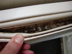 Souvent, des points noirs et verts se forment sur les plis de l'élastique et sur les murs. Cela est dû à la maintenance à long terme des équipements de réfrigération sous une forme fermée. De nombreux locataires d'appartements, lors de l'enregistrement, observent une image similaire. Si le propriétaire quitte la maison pendant une longue période, l'appareil doit être débranché du secteur, retirer les aliments et ouvrir la porte pour les intempéries. Grâce à la circulation de l'air et à l'environnement sec, la moisissure ne se développera pas.