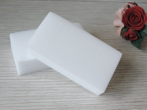- L'apparence de la mousse. Au contact de l'eau, l'éponge commence à se dissoudre petit à petit, formant une mousse de mélamine, grâce à laquelle la saleté est éliminée beaucoup plus rapidement.