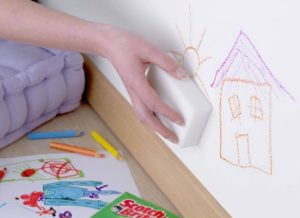 - Salons et chambres. Il élimine facilement l'encre, les stylos, les feutres, les marqueurs et les taches de peinture. Par conséquent, elle est une assistante utile pour les jeunes parents ou ceux qui préfèrent garder leur bureau - lieu de travail - dans un ordre absolu. L'éponge peut être utilisée sur les sols, les plafonds et les murs, sur les miroirs, le verre et tous types de meubles.C'est également une option idéale pour le nettoyage général lorsqu'il est nécessaire de nettoyer les fenêtres sans stries ni taches blanches.