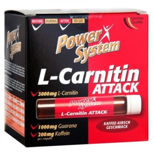 - Sirop Power System Attack 3000. Il est livré en flacons individuels de 50 ml, chacun contenant 3000 mg de carnitine plus caféine et guarana.