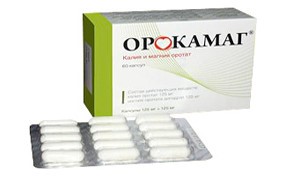 Orokamag contient non seulement du magnésium avec du calcium, mais également de l'acide orotique. Indispensable pour la synthèse des acides aminés dans l'organisme. Entre autres, il fixe le magnésium dans les cellules du corps humain. Les vitamines sont prises quatre capsules trois fois par jour. La durée d'admission est de 1 à 1,5 mois.