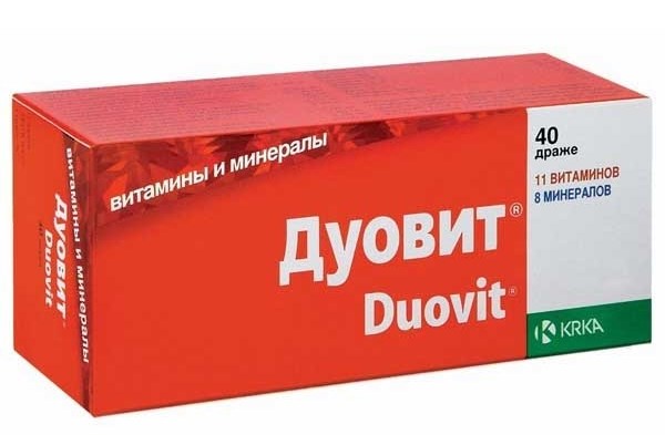 Les vitamines "Duovit" sont produites sous forme de dragées bleues et rouges. Ils diffèrent par leur composition. Dans la dragée rouge, la partie principale des composants est représentée par des vitamines et les comprimés bleus contiennent des macro et des micro-éléments. Le médicament est pris un comprimé de chaque couleur, une fois par jour.Le cours de traitement est de 20 jours.