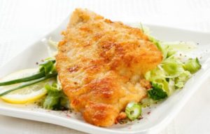 - Les morceaux de filet sont d'abord roulés dans la farine, puis dans un œuf, puis mis dans une poêle avec de l'huile végétale chauffée.