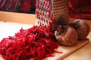 Cela nécessite une râpe en plastique finement perforée et une gaze propre. La gaze doit être bouillie et séchée. Le légume râpé est enveloppé dans une étamine et pressé le liquide. Cette méthode ne convient pas à la préparation de grands volumes, mais à des fins médicinales, les betteraves peuvent être extraites de cette manière. À partir d'un petit légume racine, on obtient environ un demi-verre de jus.