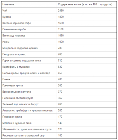 L'élément contient différents noms. Certains aliments sont des champions de la teneur en potassium.