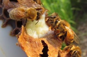 Les jeunes abeilles, âgées de cinq à quinze jours, produisent cette gomme utile pour nourrir les larves avec leurs glandes pharyngées. Par la suite, elles perdent cette propriété et se transforment en abeilles ouvrières ordinaires.