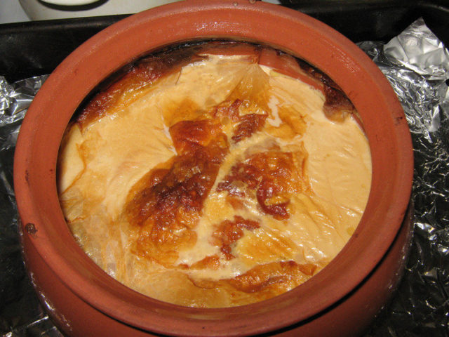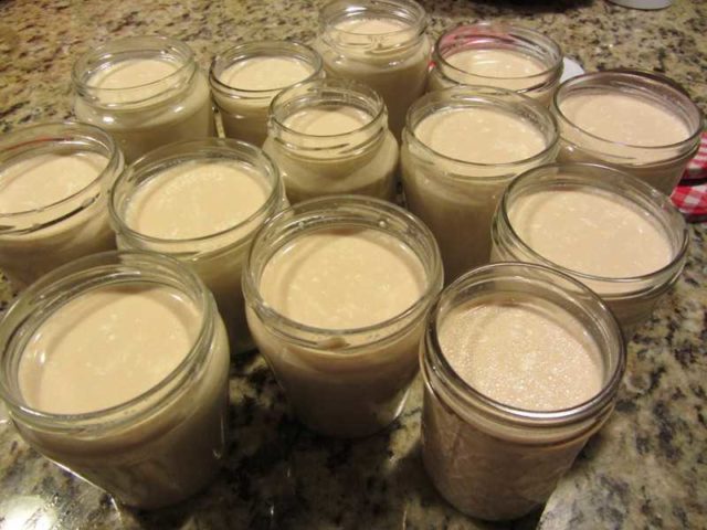 - Dans le four... Environ 3 litres de lait sont versés dans un chaudron ou un pot en argile à parois épaisses et mis au four pendant 5 heures à une température de 100 ° C ou légèrement plus élevée. De temps en temps, la porte du four devra être légèrement ouverte pour retirer la mousse foncée qui monte du lait. Peu de temps avant d'être prêt, le lait dans le pot prendra une couleur crémeuse caractéristique et divisera environ de moitié en volume, la moitié s'évaporera simplement sous l'influence de la température élevée.