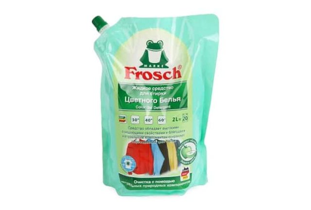 Frosch - un gel popolare per oggetti colorati e bianchi - Weasel Color Shine - il gel non solo aiuta a mantenere la morbidezza del tessuto, ma mantiene anche la sua luminosità anche dopo numerosi lavaggi;