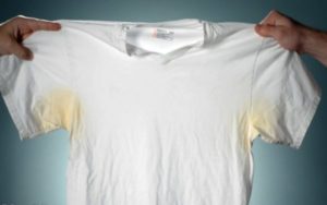 I vestiti sotto le ascelle cambiano gradualmente colore, poiché le secrezioni delle ghiandole sudoripare penetrano in profondità nelle fibre dei tessuti. Pertanto, è necessario provare a rimuovere le macchie scure o gialle sotto le ascelle per salvare i vestiti.