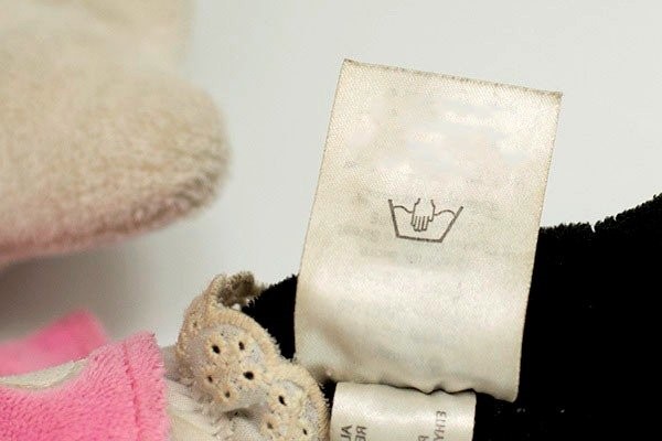 L'etichetta cucita dal produttore contiene informazioni sulla composizione del materiale e sul metodo di cura. Se si perde nel tempo o le informazioni non possono essere lette, di solito lavano il prodotto a una temperatura di 30-40 gradi.