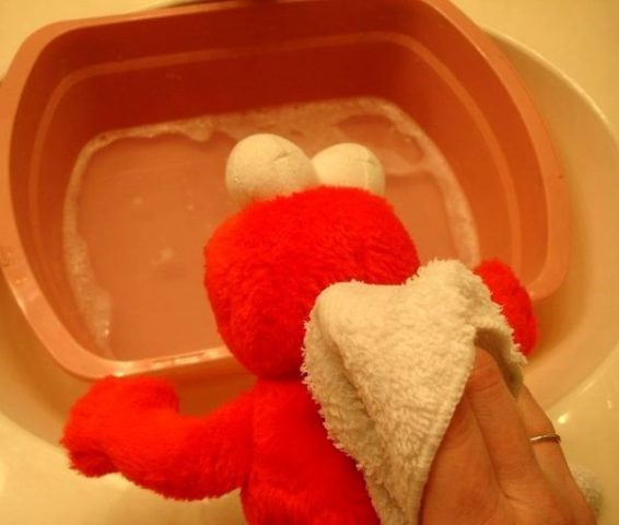 Se non è possibile portare il giocattolo al lavaggio a secco, in questi casi è possibile applicare un trattamento superficiale umido. Si esegue con una spugna insaponata con detersivo. Quindi lavare accuratamente la composizione dalla superficie, asciugare all'aria aperta.