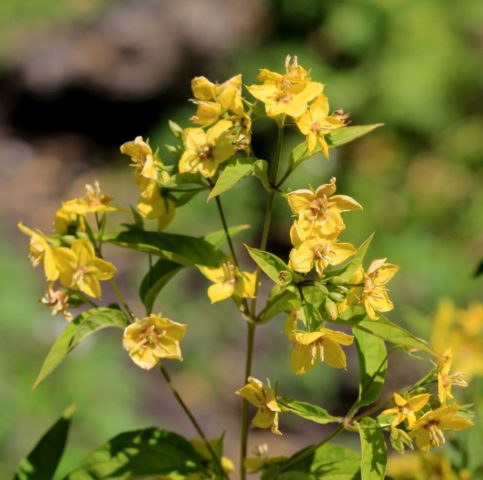 La salamella di quercia raggiunge un'altezza di soli 30 cm - Punto (Lysimachia punctata). La specie cresce nell'Europa centrale e occidentale, fiorisce con gemme gialle per un mese all'inizio dell'estate.