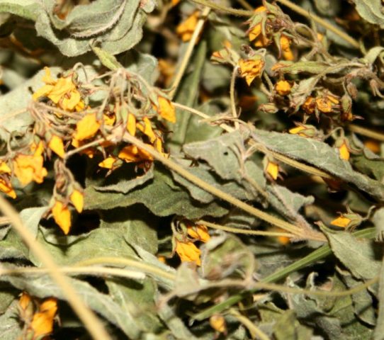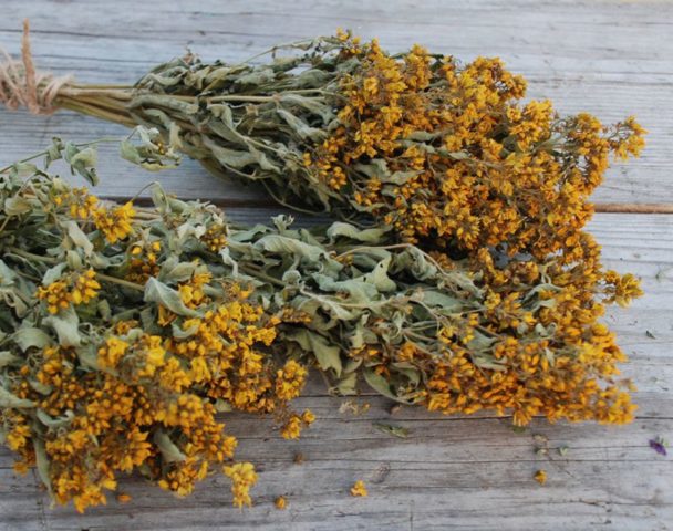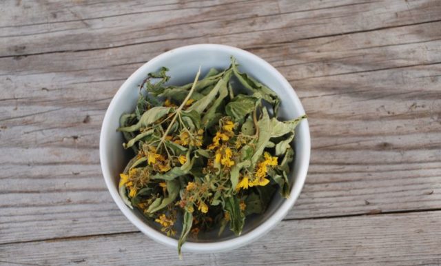 - 5 g di erba secca vengono schiacciati e cotti a vapore con un bicchiere di acqua bollente;