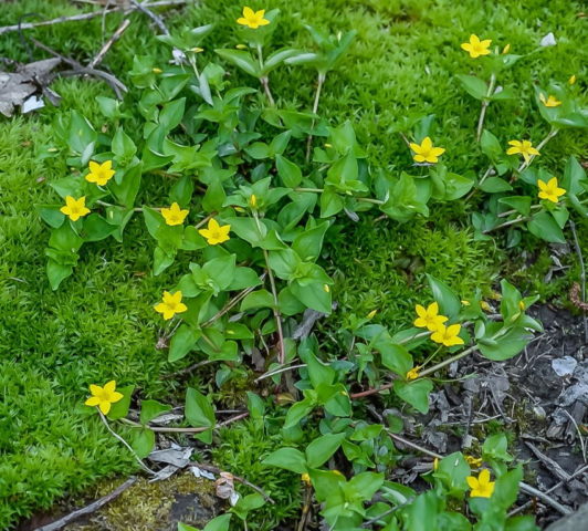 La Lisimachia comune è una buona pianta del miele - Dubravny (Lysimachia nemorum). La varietà europea fiorisce a maggio e produce gemme singole a gambo lungo.