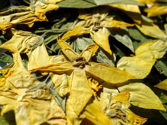 - 10 g della pianta essiccata vengono versati con 200 ml di acqua calda;