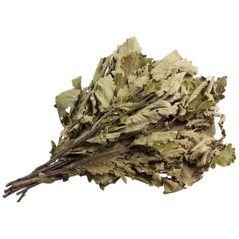 Nel processo di applicazione diretta delle scope di quercia, gli acidi inclusi nelle foglie sono coinvolti in una reazione con composti proteici, formando un film protettivo. Questo aiuta ad alleviare l'irritazione della pelle e rigenerare i tessuti danneggiati. Di conseguenza, la gravità dell'infiammazione e del dolore è ridotta.