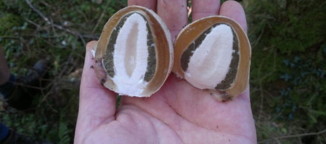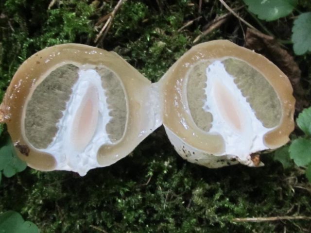 A poco a poco, il colore del cappuccio diventa giallo. La sua struttura rappresenta le cellule. Per scopi medicinali, raccolgono uova di funghi, che vengono riempite con olio di terra sotto il guscio. Questa gelatina gelatinosa si chiama peridio.
