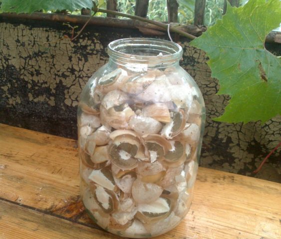I funghi non vengono lavati, ma asciugati con un panno umido. Prima di essiccare direttamente le uova, le gambe devono essere tagliate e poi appese ai fili. La stanza deve essere ben ventilata. La luce solare diretta non è consentita. I funghi secchi possono essere conservati per 2 anni, a condizione che siano conservati in contenitori di vetro chiusi.