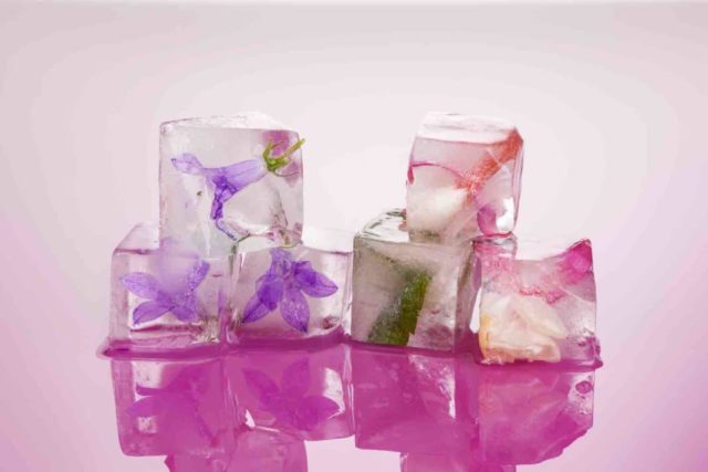 Per cucinare occorrono 2 gocce di etere, 200 ml di brodo di camomilla. L'infuso risultante viene filtrato, versato in stampi e inviato al congelatore. Si consiglia di pulire il viso con ghiaccio al mattino dopo il sonno prima di applicare cosmetici decorativi.
