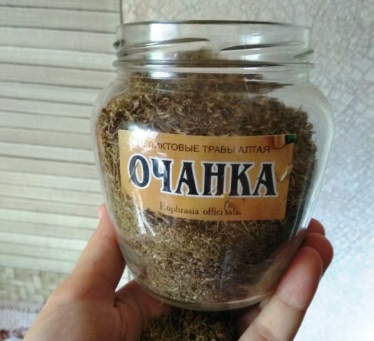 Le proprietà benefiche dell'occhio favoriscono il suo utilizzo nella medicina alternativa. Da esso vengono preparati infusi medicinali, decotti e tinture alcoliche. La tisana di eufrasia ha un effetto tonico generale. Per la preparazione di medicinali, le materie prime vengono utilizzate in forma essiccata. Puoi prepararlo da solo o acquistarlo in farmacia.