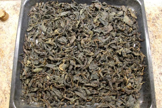 Conserva le foglie in un luogo buio a temperatura ambiente e bassa umidità. Di tanto in tanto, è necessario mescolare le materie prime in modo che non compaiano muffe e parassiti.
