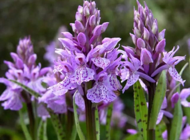 Una caratteristica speciale è la radice composta da tuberi giovani e vecchi. L'alto fusto ha 8 foglie, che sono ricoperte di macchie lilla. I fiori di una tonalità rosa chiaro differiscono nella forma dell'elmo. Orchis è usato per trattare le malattie dell'apparato digerente.