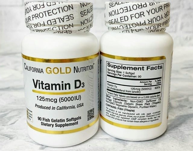 - California Gold Nutrition 125 mcg (5.000 UI, 1250% DV). Ogni confezione contiene 90 o 360 compresse. Supporta denti e ossa sani. L'integratore è rappresentato dal colecalciferolo da lanolina. Assumere 1 compressa al giorno durante i pasti.