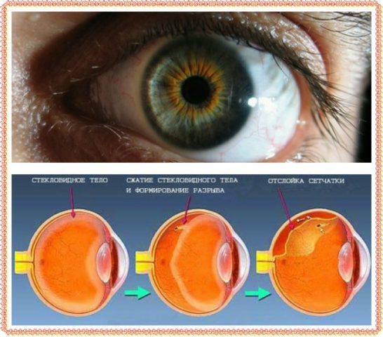 Lo stadio principale nello sviluppo della patologia è la distruzione del corpo vitreo, che si forma quando viene tirato. Il fenomeno porta alla rottura della retina, che può causare il distacco dalla coroide.