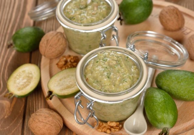 Feijoa può essere assunto per scopi medicinali e per la prevenzione della carenza di vitamine sotto forma di dessert alla frutta o in combinazione con altri prodotti. La Feijoa migliora il gusto delle insalate di frutta e verdura, le bacche vengono utilizzate insieme ad agrumi e mele, avocado e noci, aggiunte ai ripieni delle torte e decorano i piatti di carne.