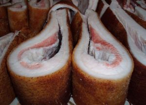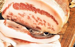 Come scegliere il grasso migliore? Vale la pena cercare un pezzo spesso sei dita. Un prodotto adeguatamente salato dovrebbe essere morbido. Se è difficile tagliare le fette da un pezzo, questa è una pancetta di bassa qualità. La presenza della pelle e il metodo di salatura (a secco o ad umido) in questo caso non hanno importanza. La pancetta affumicata dovrebbe essere ancora più morbida e saporita.