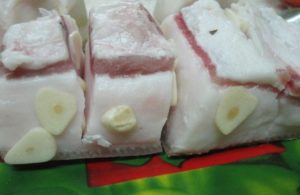 L'aglio, a sua volta, contiene anche una varietà di sostanze nutritive. Questi sono phytoncides che hanno la capacità di uccidere i batteri o inibirne la crescita. L'aglio è anche chiamato antibiotico naturale ed è efficace sia nella prevenzione delle infezioni virali respiratorie acute che nel cancro. È anche ricco di vitamina C e PP, oltre che di quercetina, un bioflavonoide che fluidifica il sangue e previene la formazione di coaguli di sangue. Inoltre, abbassa i livelli di colesterolo nel sangue. Tutto ciò fa pensare che i benefici dello strutto salato all'aglio siano evidenti per la prevenzione del raffreddore e dell'influenza.